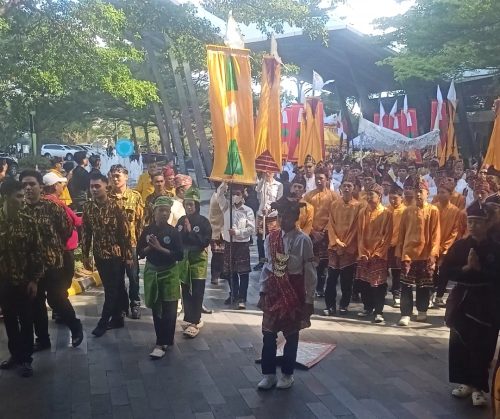 BANDAR LAMPUNG – Arak-arakan dan tarian daerah mewarnai pembukaan pelantikan pengurus DPD Partai Golkar Lampung di Hotel Novotel Bandar Lampung, Minggu 30 November 2025.