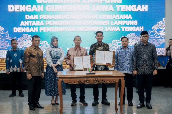 Bandar Lampung —- Pemerintah Provinsi Lampung dan Pemerintah Provinsi Jawa Tengah mempertegas komitmen sinergi antarwilayah guna mendorong pertumbuhan ekonomi nasional.