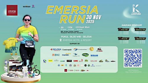 BANDAR LAMPUNG – Emersia Hotels & Resorts Bandar Lampung resmi mengumumkan dukungan dari sejumlah sponsor utama dan pendukung untuk penyelenggaraan Emersia Run 2025 pada 30 November mendatang. Dukungan ini menjadi fondasi utama bagi terselenggaranya ajang lari besar yang diperkirakan akan melibatkan ribuan peserta dari berbagai komunitas olahraga dan keluarga.