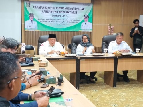 LAMPUNG TIMUR — Pemerintah Kabupaten Lampung Timur memaparkan Capaian Kinerja Pembangunan Daerah Tahun 2025 dalam kegiatan evaluasi akhir tahun yang digelar di Aula Bappeda Lampung Timur, Rabu (31/12/2025). Paparan ini menjadi tolok ukur atas pelaksanaan program pembangunan daerah sekaligus refleksi arah kebijakan ke depan.