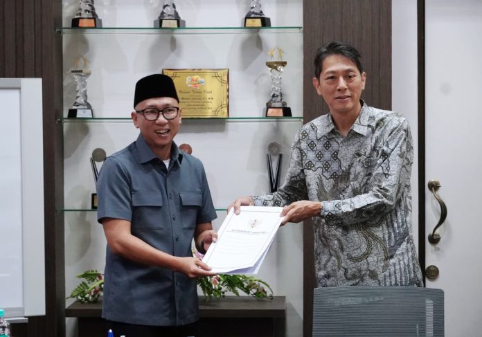 BANDARLAMPUNG — Gubernur Lampung, Rahmat Mirzani Djausal menerima Senior Executive Director Japan Association for Construction (JAC) Yugo Okamoto dalam pertemuan resmi di ruang kerjanya, Kamis (4/12/2025), untuk membahas penyiapan tenaga kerja Lampung yang berminat bekerja di Jepang.