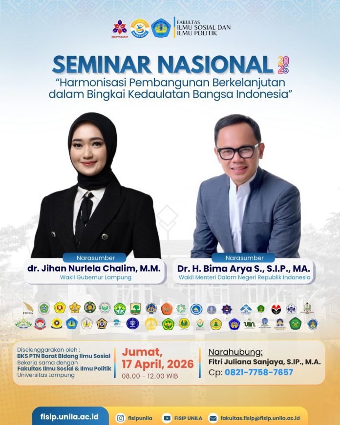 BANDARLAMPUNG – Badan Kerja Sama Perguruan Tinggi Negeri (BKS-PTN) Wilayah Barat Bidang Ilmu Sosial akan menggelar Rapat Kerja (Raker) Tahunan, Kamis-Sabtu, 16-18 April 2026. Bertindak sebagai tuan rumah adalah Fakultas Ilmu Sosial dan Ilmu Politik (FISIP) Universitas Lampung (Unila).