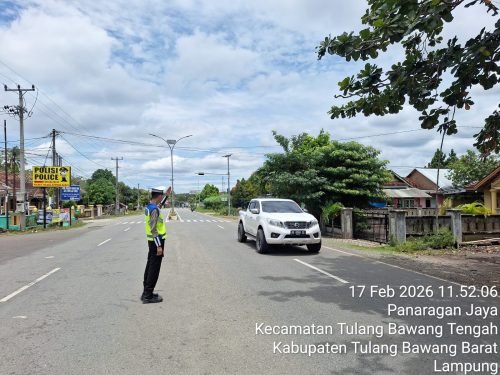 TUBABA – Dalam rangka menjaga kelancaran dan keselamatan arus lalu lintas, Satuan Lalu Lintas (Sat Lantas) Polres Tulangbawang Barat (Tubaba) Polda Lampung melaksanakan kegiatan Pengamanan (PAM) Rawan Siang sekaligus monitoring arus lalu lintas bertempat di Simpang uluan Nughik Kec. Tulang Bawang Tengah Kab. Tulang Bawang Barat, Selasa (17/02/2026).