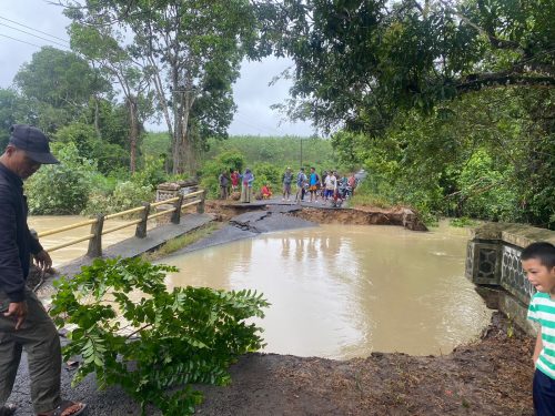 Setibanya di lokasi, Kabag Ops Polres Tubaba bersama Tim Satgas Tanggap Bencana Polres Tubaba bersama Polsek Tumijajar mendapati kondisi badan jembatan putus akibat tergerus arus air, sehingga sangat berisiko bagi masyarakat yang hendak melintas.