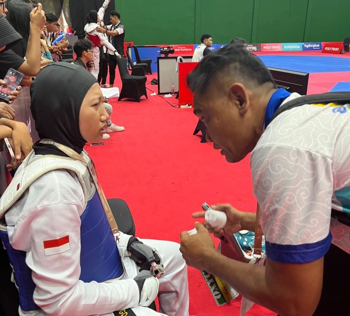 KUDUS – Atlet Taekwondo putri Lampung Carraya Idga Prameswari gagal meraih medali emas di PON Kudus Jawa Tengah 2025.