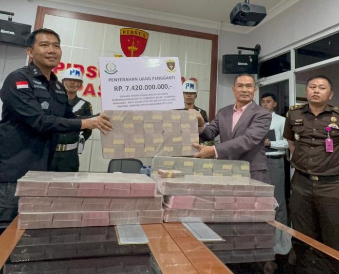 BANDAR LAMPUNG – Kejati Lampung berhasil mengumpulkan pengembalian kerugian keuangan negara dari para tersangka dugaan korupsi proyek pembangunan Jalan Tol Terbanggi Besar–Pematang Panggang–Kayu Agung atau Terpeka (STA 100+200 s/d STA 112+200). dengan total nilai mencapai Rp11,14 miliar.