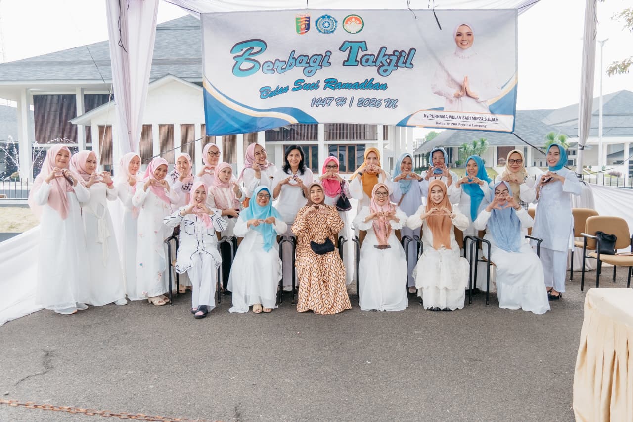 Bandar Lampung — Memasuki hari keenam pelaksanaan kegiatan berbagi takjil Ramadan 1447 Hijriah, Tim Penggerak PKK Provinsi Lampung bersama Dharma Wanita Persatuan (DWP) Provinsi Lampung kembali membagikan paket berbuka puasa kepada masyarakat di depan Mahan Agung, Minggu (01/03/2026).