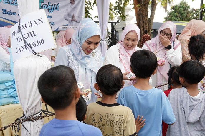 Bandar Lampung — Memasuki hari ke-4 pelaksanaan kegiatan berbagi takjil, Tim Penggerak PKK Provinsi Lampung bersama Dharma Wanita Persatuan (DWP) Provinsi Lampung kembali membagikan paket berbuka puasa kepada masyarakat di depan Mahan Agung, Jumat (27/02/2026).