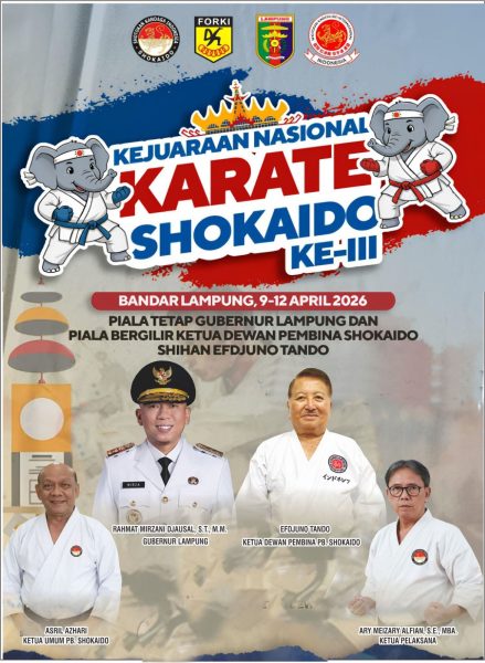 BANDAR LAMPUNG – Provinsi Lampung ditunjuk menjadi tuan rumah Kejuaraan Nasional (Kejurnas) Karate Shokaido yang dijadwalkan berlangsung pada 9 hingga 12 April 2026 mendatang.