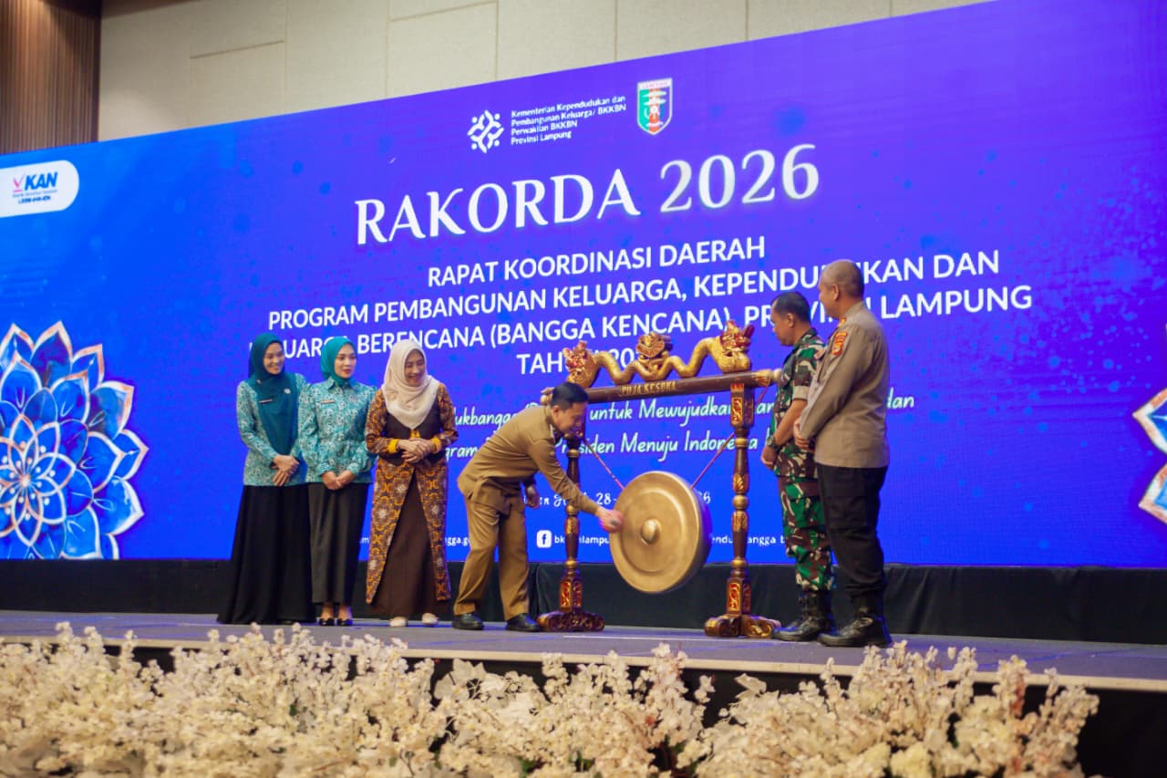 Sementara itu, Menteri Kependudukan dan Pembangunan Keluarga/Kepala BKKBN yang diwakili oleh Plt. Deputi Bidang Penggerakan dan Peran Serta Masyarakat, Wahyuniati, menyampaikan apresiasi atas capaian Provinsi Lampung dalam pelaksanaan Program Bangga Kencana.