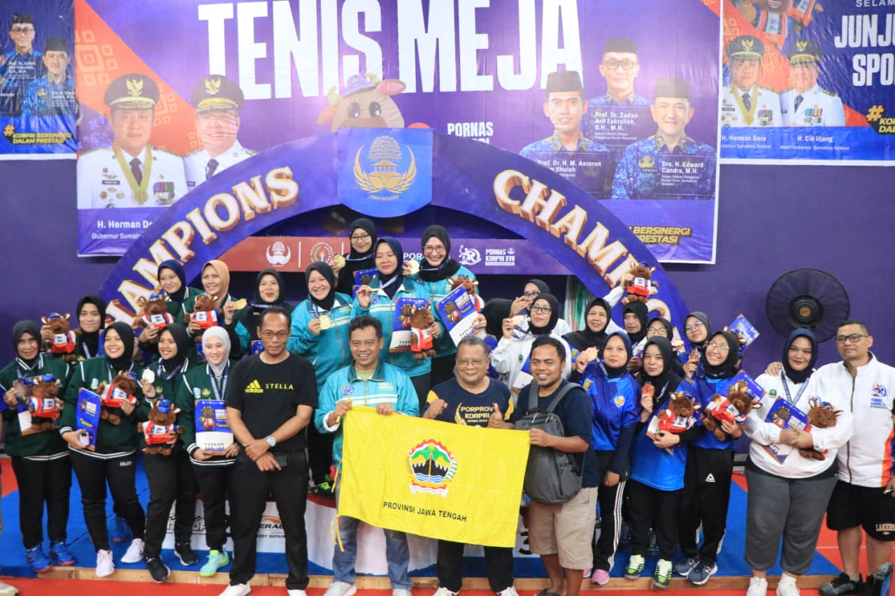 Palembang — Tim Tenis Meja Beregu Putri Lampung berhasil menorehkan prestasi membanggakan dengan meraih medali perunggu pada ajang Pekan Olahraga Nasional (Pornas) Korpri XVII Tahun 2025 yang digelar di Pitstop Table Tennis Centre, Palembang, Selasa (7/10/2025).