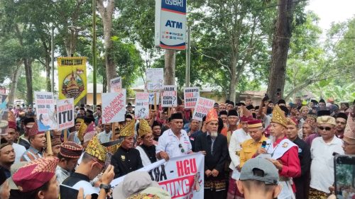 PESAWARAN – Masyarakat Adat Marga Way Lima menggelar aksi demonstrasi menuntut pengembalian tanah ulayat adat Way Lima yang hingga kini masih dikuasai PTPN I Regional 7 Unit Way Lima, meskipun kontrak penguasaan tanah oleh perusahaan perkebunan Belanda telah berakhir sejak tahun 1940.