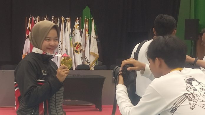 KUDUS – Kenshi Shorinji Kempo Lampung Vina Febriana Hasan di luar dugaan berhasil meraih medali emas di PON Beladiri I Kudus 2025.