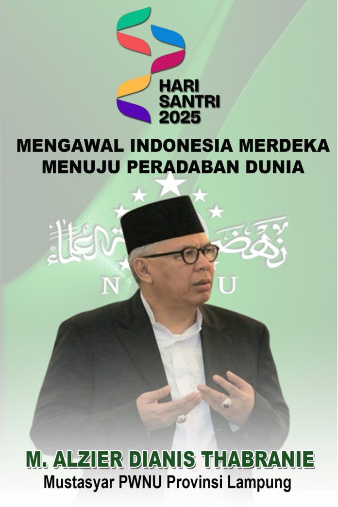 BANDARLAMPUNG – Tokoh masyarakat Lampung yang juga Mustasyar Pengurus Wilayah Nahdlatul Ulama (PWNU) Provinsi Lampung, M. Alzier Dianis Thabranie, S.E., S.H., menyambut Peringatan Hari Santri Nasional (HSN), 22 Oktober 2025.