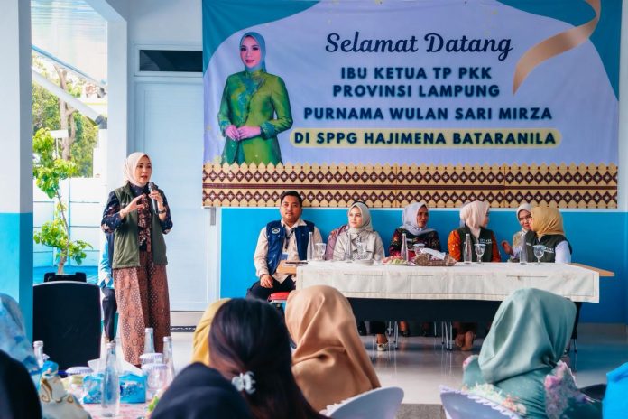 Bandar Lampung – Ketua Tim Penggerak Pemberdayaan Kesejahteraan Keluarga (TP PKK) Provinsi Lampung, Purnama Wulan Sari, meresmikan Dapur Makan Bergizi Gratis (MBG) Satuan Pelayanan Pemenuhan Gizi (SPPG) Hajimena, Batarannila, Kamis (04/12/2025).