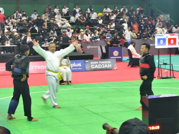 KUDUS – Salah satu pesilat andalan Lampung M. Wildan terus menjaga peluang untuk mendapatkan medali di PON Beladiri I Kudus 2025.