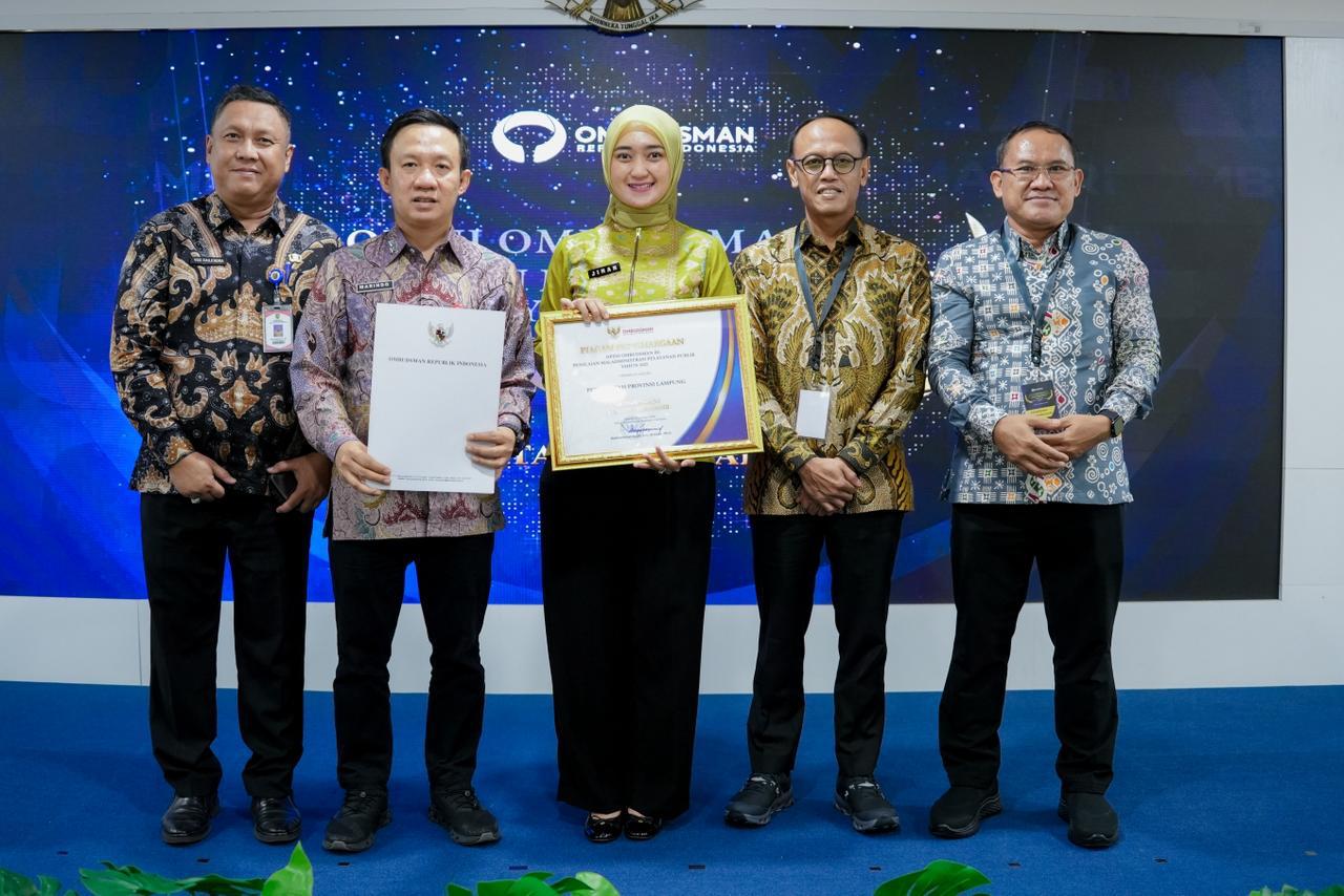 Penghargaan diserahkan oleh perwakilan Ombudsman RI dan diterima oleh Wakil Gubernur Lampung, Jihan Nurlela,, dalam acara Penyampaian Opini Ombudsman RI yang berlangsung di Aula Lantai I Kantor Ombudsman RI, Jakarta Selatan, Kamis (29/01/2026).