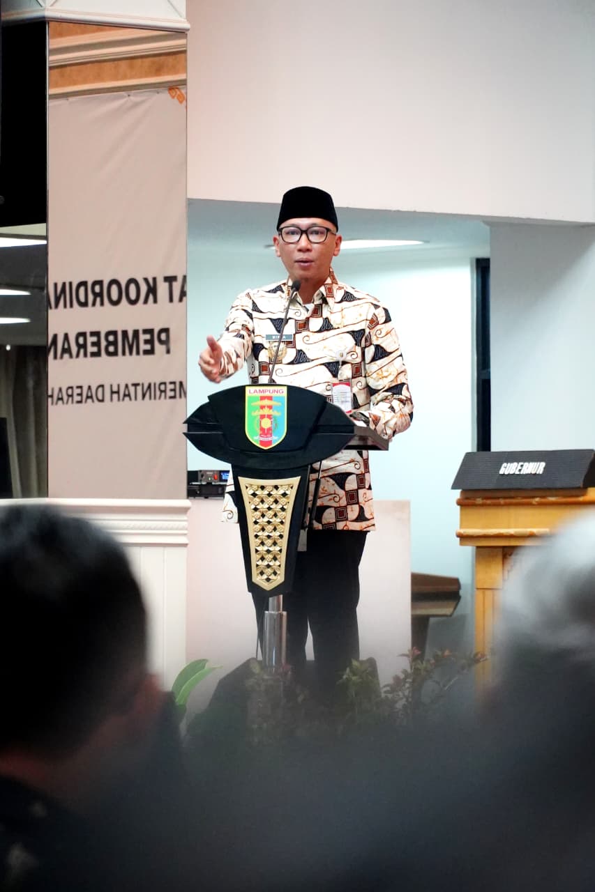 Bandar Lampung — Gubernur Lampung, Rahmat Mirzani Djausal membuka Rapat Koordinasi Penguatan Sinergi dan Kolaborasi Pemberantasan Korupsi Pemerintah Daerah Wilayah Lampung yang diikuti oleh 15 kabupaten/kota se-Provinsi Lampung. Acara tersebut berlangsung di Balai Keratun, lantai 3, kompleks Kantor Gubernur Lampung, Rabu (5/11/2025).