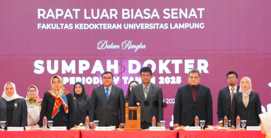 Bandarlampung: Delapan belas mahasiswa Fakultas Kedokteran (FK) Universitas Lampung (Unila) resmi mengucapkan sumpah dokter pada prosesi sumpah dokter periode IV tahun 2025. Kegiatan yang digelar Selasa, 25 November 2025, di Swiss-Belhotel Lampung ini dibuka Ketua Senat FK Unila.
