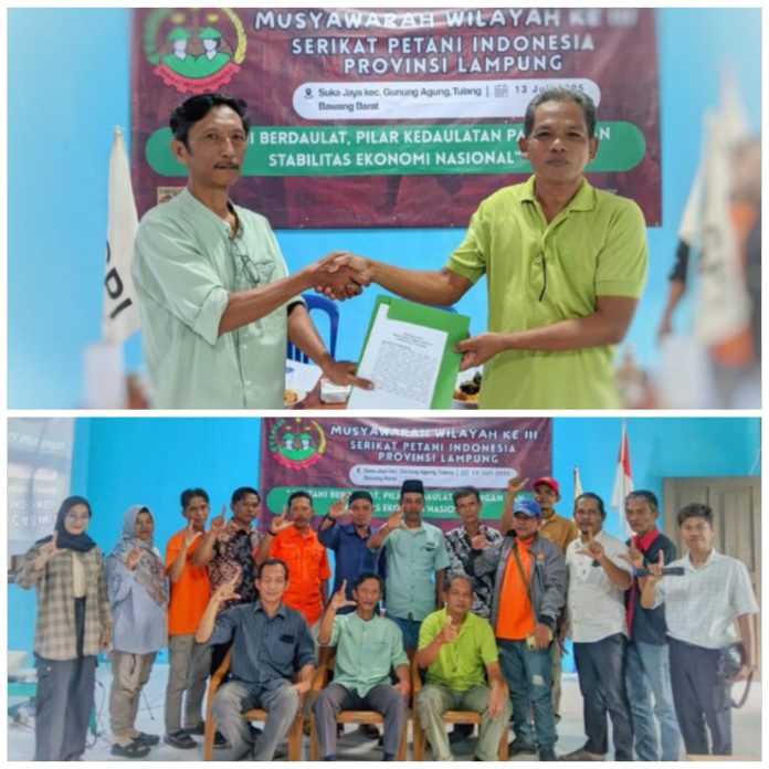 LAMPUNG – Serikat Petani Indonesia (SPI) Provinsi Lampung menggelar Musyawarah Wilayah (Muswil) ke-3 di Desa Suka Jaya, Kabupaten Tulang Bawang Barat, Minggu (13/7/2025). Muswil ini mengusung tema “Petani Berdaulat, Pilar Kedaulatan Pangan dan Stabilitas Ekonomi Nasional.”