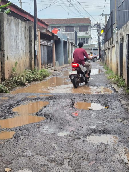 BANDAR LAMPUNG – Masyarakat di sekitaran Jalan Pelita 2 Kelurahan Labuhan Ratu, Kecamatan Labuhan Ratu, Bandar Lampung mengeluhkan kondisi jalan yang mengalami kerusakan parah.