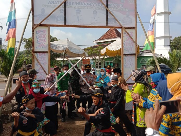 LAMPUNG TIMUR – Pentas Pencak Silat Pertisan Siliwangi mengiringi penyambutan acara Launching Kampung Tangguh Nusantara di Desa Negara Nabung Kecamatan Sukadana Kabupaten Lampung Timur, Kamis (18/3/2021).