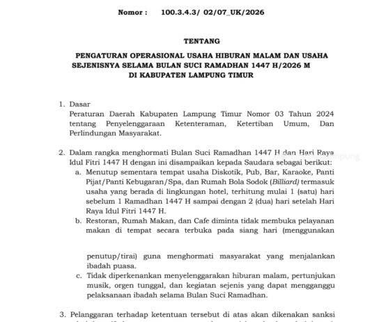 LAMPUNG TIMUR – Pemerintah Kabupaten Lampung Timur melalui Badan Penanggulangan Bencana Daerah (BPBD) membentuk Forum Pengurangan Risiko Bencana (Forum PRB) sebagai langkah strategis memperkuat...