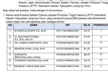 Pengumuman Nilai Administrasi Seleksi Administrasi JPTP Sekda Lampung Timur, M Noer Alsyarif Raih Skor...