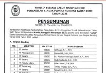MA Umumkan Hasil Seleksi Akhir Calon Hakim Ad Hoc Tipikor Tingkat Pertama dan Banding,...