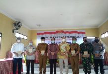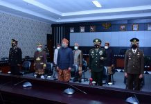 PANARAGAN - Bupati Tulangbawang Barat Umar Ahmad SP menghadiri upacara peringatan hari lahir Pancasila di ruang rapat bupati, Selasa (1/6/2021).