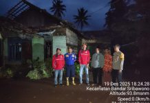 LAMPUNG TIMUR – Hujan lebat disertai angin puting beliung menerjang Desa Bandar Agung, Kecamatan Bandar Sribhawono, Kabupaten Lampung Timur, Jumat sore (19/12/2025).