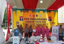 TUBABA - Pengurus Bhayangkari Tulang Bawang Barat (Tubaba) mengunjungi sejumlah pos pengamanan (Pospam) Operasi Ketupat Krakatau 2023, Kamis (20/4).