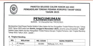 MA Umumkan Hasil Seleksi Akhir Calon Hakim Ad Hoc Tipikor Tingkat Pertama dan Banding